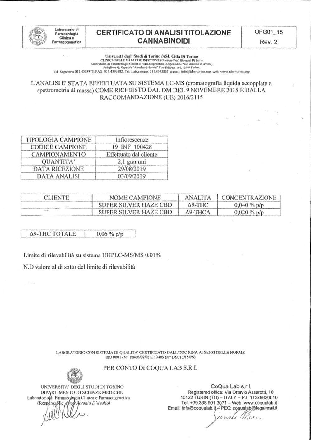 Super Silver Haze är helt fri från frö, blad och kvistar. Budsen innehåller 12% CBD och mindre än 0,2% THC.
